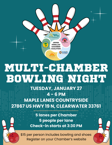 Join Safety Harbor, Tarpon Springs, Palm Harbor, Dunedin, and Upper Tampa Bay Chamber members for a little fun and cross-chamber networking in support of business and good times.